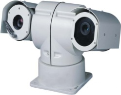 集成了紅外熱像儀,彩色攝像機(jī),可同時(shí)輸出兩路視頻,具有熱像儀超溫檢測(cè)功能,白天熱成像檢測(cè)到高溫目標(biāo),同時(shí)可見(jiàn)光攝像機(jī)檢測(cè)到火源時(shí),云臺(tái)停止巡航,并向遠(yuǎn)程監(jiān)控主機(jī)發(fā)送報(bào)警信息,報(bào)警信息包括:機(jī)器ID,云臺(tái)水平和俯仰角度,超溫區(qū)域的坐標(biāo)(左上角和右下角)。夜間由于環(huán)境干擾較少只需要熱成像檢測(cè)到超溫目標(biāo)即可認(rèn)定有火情。