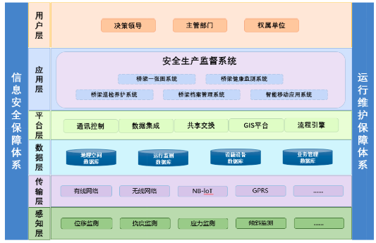 該監(jiān)管系統(tǒng)包括:橋梁一張圖系統(tǒng)、橋梁檔案管理、橋梁健康監(jiān)測(cè)、橋梁巡查養(yǎng)護(hù)、智能移動(dòng)應(yīng)用等5個(gè)子系統(tǒng),主要實(shí)現(xiàn)橋梁檔案的信息化管理以及信息數(shù)據(jù)的動(dòng)態(tài)更新,提高日常養(yǎng)護(hù)作業(yè)效率。同時(shí),同步對(duì)市城區(qū)14座重點(diǎn)橋梁,安裝在線監(jiān)測(cè)設(shè)施,全面掌握,實(shí)時(shí)監(jiān)測(cè)橋梁的運(yùn)行動(dòng)態(tài),確保橋梁安全穩(wěn)定運(yùn)行。