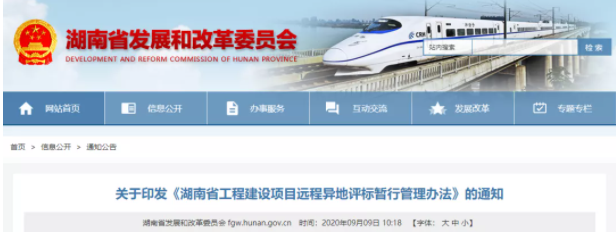 9月9日,湖南省發(fā)改委、省住建廳、省交通運輸廳、省水利廳和省公共資源交易中心等5部門聯(lián)合發(fā)布《湖南省工程建設(shè)項目遠程異地評標暫行管理辦法》。