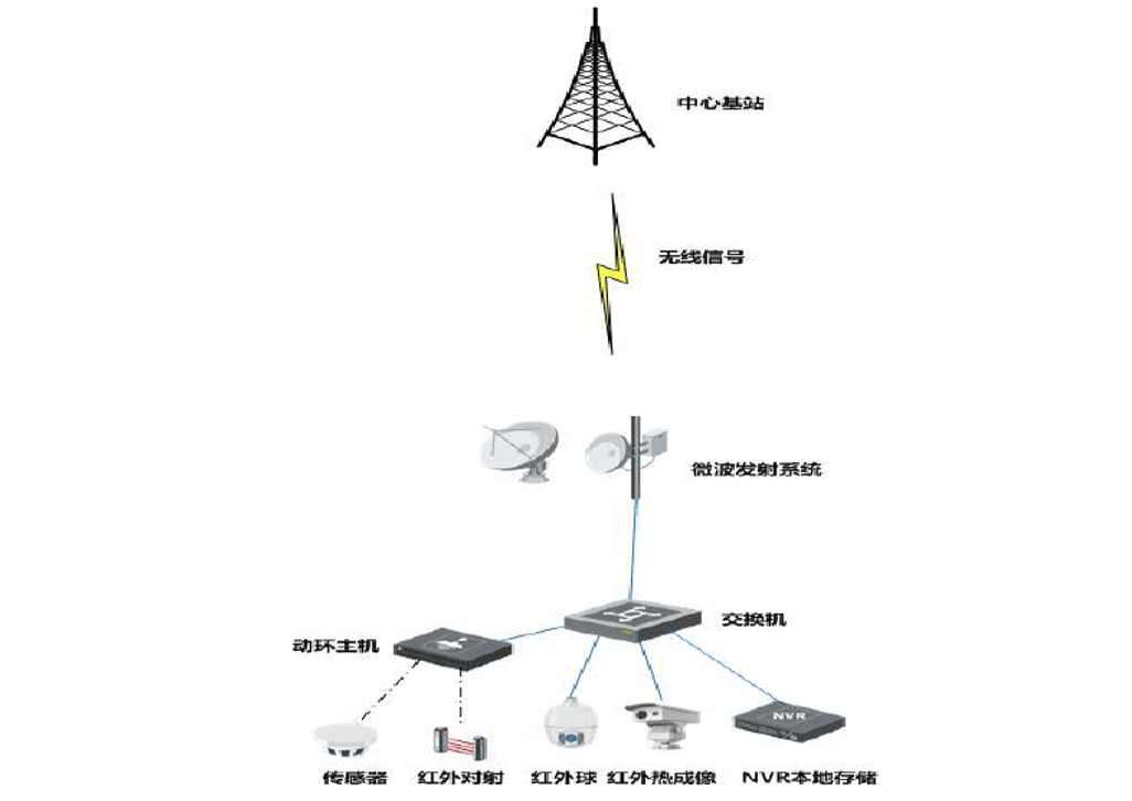 無(wú)有線傳輸條件的前端,采用微波方式,將攝像機(jī)、鏡頭拍攝的現(xiàn)場(chǎng)圖像實(shí)時(shí)傳輸?shù)街笓]中心。